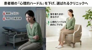 【婦人科集患】自費診療の提案ハードルを下げるカギは「羞恥心の払拭」。服を着たまま座るだけの「ペルーナ」なら、内診に抵抗がある層にもアプローチ可能です。広告費ゼロでできる院内マーケティングや、産後・更年期への訴求ポイントを解説します。