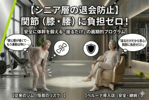 【シニア層の退会防止】関節(膝・腰)に負担ゼロ!安全に体幹を鍛える「座るだけ」の画期的プログラムNew!!